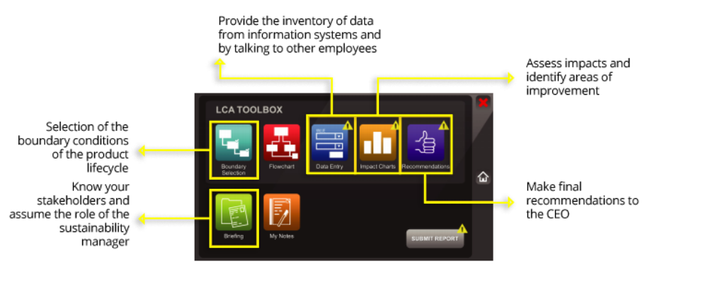 The simulator allows users to get in-depth and realistic experience of carrying out a Life Cycle Assessment (LCA) in a manufacturing company.