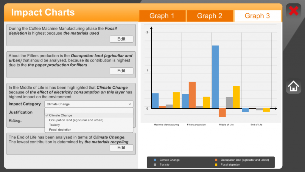 The LCA simulator has been developed by HighSkillz, with the subject expertise of Politecnico di Milano. The result is an advanced and ambitious simulator that delivers a deep understanding of LCAs and the processes needed to produce them.